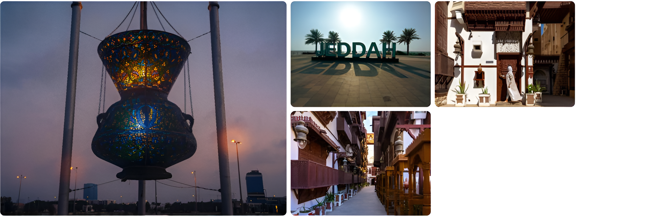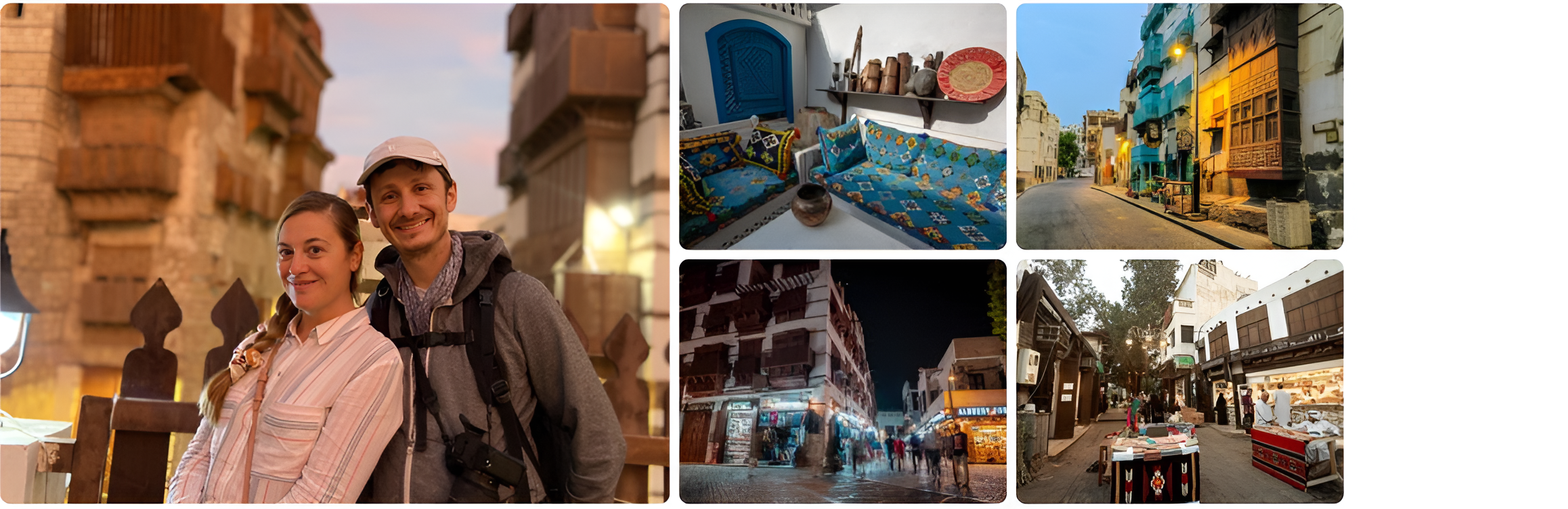 Jeddah - City tour Today we will start our tour in the morning with a short stop at Jeddah Corniche and Jeddah water front before we go to our next stop at Tayebat Museum. We will head now to The Tayebat Museum for a fascinating look into Jeddah’s long and cosmopolitan past, take an informative tour indeed the Tayebat Museum for a superbly curated representation of the city’s 2,500-year history. Located in the Al Faisaliyah district, the museum is housed in a multiroom complex that re-creates the traditional Hijazi architecture of the old city, with bay windows overlaid with intricate wooden lattice work and ornate coral masonry. With several floors of in-depth exhibits, the museum offers a living history lesson on the foundation of Jeddah, Saudi Arabia and the wider Arabian Peninsula. There is also an entire floor dedicated to the city’s rich Islamic heritage. After our visit we will go to The house of Islamic arts, a museum specialized in Islamic arts. From the far countries of China and India to the farthest countries of the Maghreb and Andalusia of various arts, where the museum contains more than a thousand pieces of art representing 15 centuries of the history of Islamic art from all countries of the Islamic world Before we move to the next tour we will have lunch we will suggest one of the local nice restaurants here in Jeddah that serves the famous traditional dishes in Jeddah. Tayebat Museum Closed on Fridays. Al Balad Tour - Jeddah Historical City In the evening we will start our tour in Al Balad as local call it which means “ the town” as reference to the base of Jeddah. Al-Balad was founded in the 7th century and historically served as the centre of Jeddah. Our tour will go through the history of these building including going inside one of the buildings to see the interior designs , furniture Al Balad is registered as a world heritage UNESCO site and since then the old buildings with its unique window designs and doors are being preserved along with its unique buildings which some have been built using sea shells and stones !. We will also explain the historical importance of some sites and locations while we wonder around the narrow streets to explain how merchants used to sell their goods and how pilgrims used to get their supplies of cloth and food before they head to Makkah through the Makkah Gate in Al Balad. The old Mosques is another tourist attraction where some were founded over 300 years ago and still functional as a mosque.
