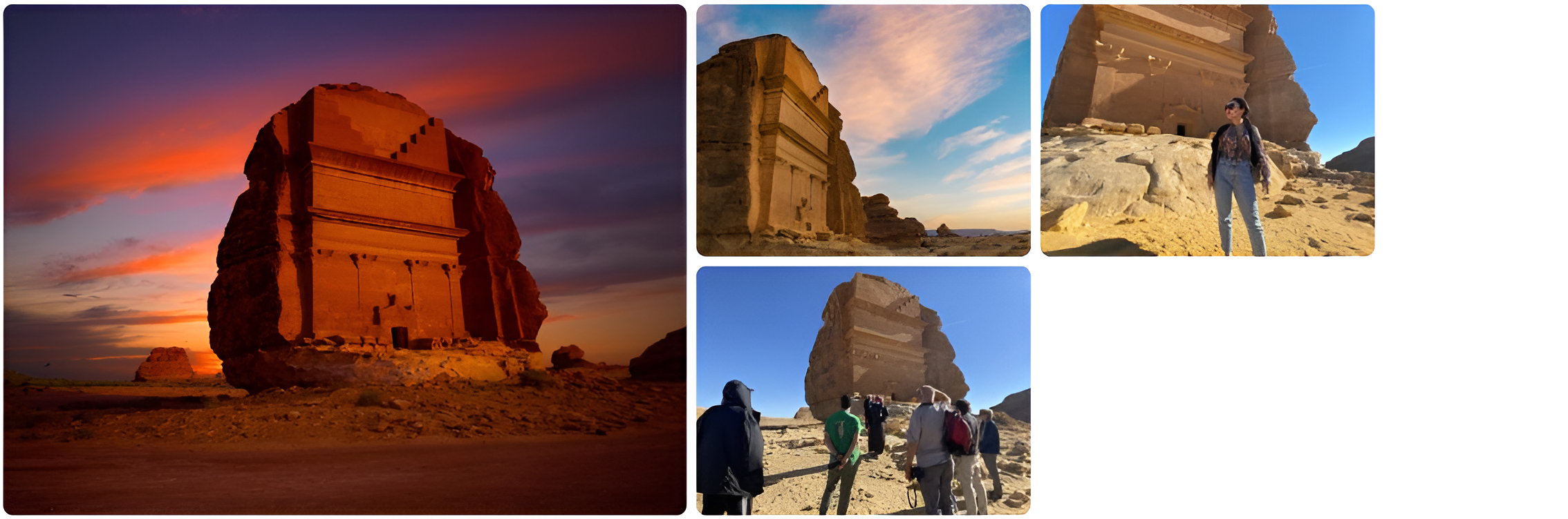 Hegra tour - Madain Saleh Today we are starting with the Madain Saleh or Hegra , which is a remarkable archaeological site in Saudi Arabia that combines natural beauty, historical significance, and cultural heritage, making it a truly beautiful and mesmerizing destination to explore. Here's why : Stunning Architecture - Hegra boasts impressive rock-cut tombs and facades that showcase the exceptional craftsmanship of the Nabateans. The intricate details and intricate designs on the facades are awe-inspiring. Scenic Landscape -The site is set amidst a captivating desert landscape with sandstone cliffs, rocky outcrops, and serene surroundings. The combination of ancient architecture and the natural beauty of the desert makes it a unique and breathtaking place. Cultural Heritage - Hegra holds significant cultural and historical importance, serving as a testament to the ancient Nabatean civilization and their trade networks. It provides a glimpse into the past and allows visitors to connect with the rich history of the region. Unique Heritage Site - Being a UNESCO World Heritage Site, Hegra is recognized and protected for its outstanding universal value, ensuring its preservation for future generations to enjoy. Serenity and Tranquility - Visiting Hegra can offer a sense of peace and tranquility as you wander through the ancient\ ruins and marvel at the beauty of the surroundings. Connection to Ancient Trade Routes - Hegra was a key stop along the ancient trade routes, and its architecture reflects a blend of various cultural influences from the region. AlUla to Madinah 3 hr 37 min (331 km) Local home visit in Madinah -Dinner It's time to get access to one of the local houses where they will give you the chance to experience the Saudi hospitality. We will go for lunch/dinner inside one of the local residence houses and enjoy a home cooked traditional meal. Also an opportunity to ask about the culture and family oriented culture where house were actually designed to meet the family gathering needs, hosting and relaying on big spaces since average family has 4 to 5 children . In this great 3 hours experience , you will have a great insight about the Saudi family lifestyle and what they value.
